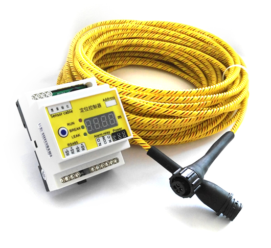 当感应线被泄漏物浸泡,则二根导电聚合物(黑色传感线)之间被短接,并使所测电流值发生变化,控制器根据欧姆定理,电阻与长度有关,通过测算,就能得到发生故障泄漏点的位置